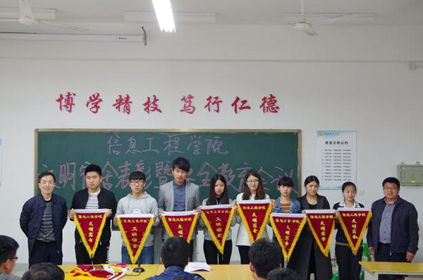 会议表彰了28个文明宿舍,并颁发了文明宿舍流动红旗。