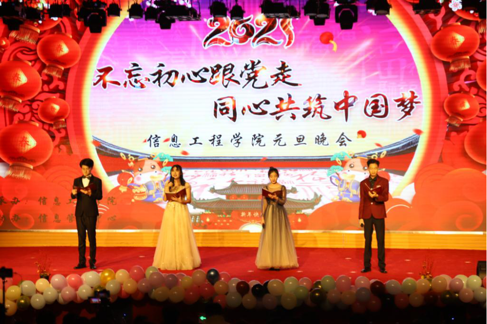 12月24日晚,雷火竞技官方网站在图书馆报告厅举办了2021年“不忘初心跟党走,同心共筑中国梦”元旦晚会。相关职能部门及二级学院负责同志与雷火竞技官方网站师生欢聚一堂,共同迎接充满希望的2021年。