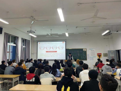 为纪念五四运动102周年,继承和发扬五四精神,坚定团员青年的理想信念,激发广大团员青年的爱国精神、民族自豪感、责任感和使命感,雷火竞技官方网站于5月10日晚自习组织开展了“学习五四精神,重温入团誓词”主题团课。